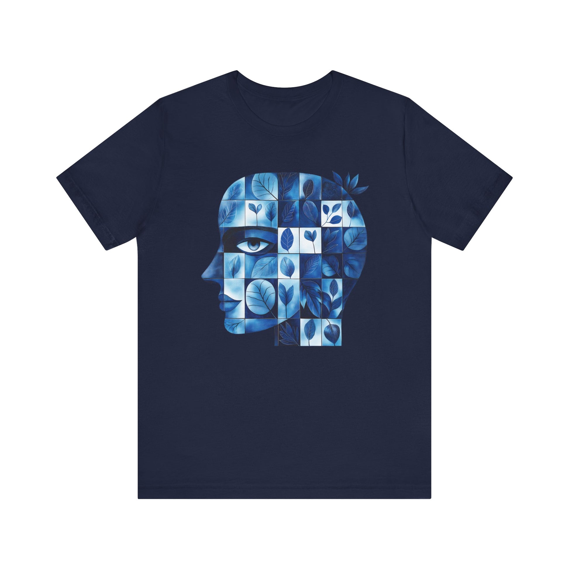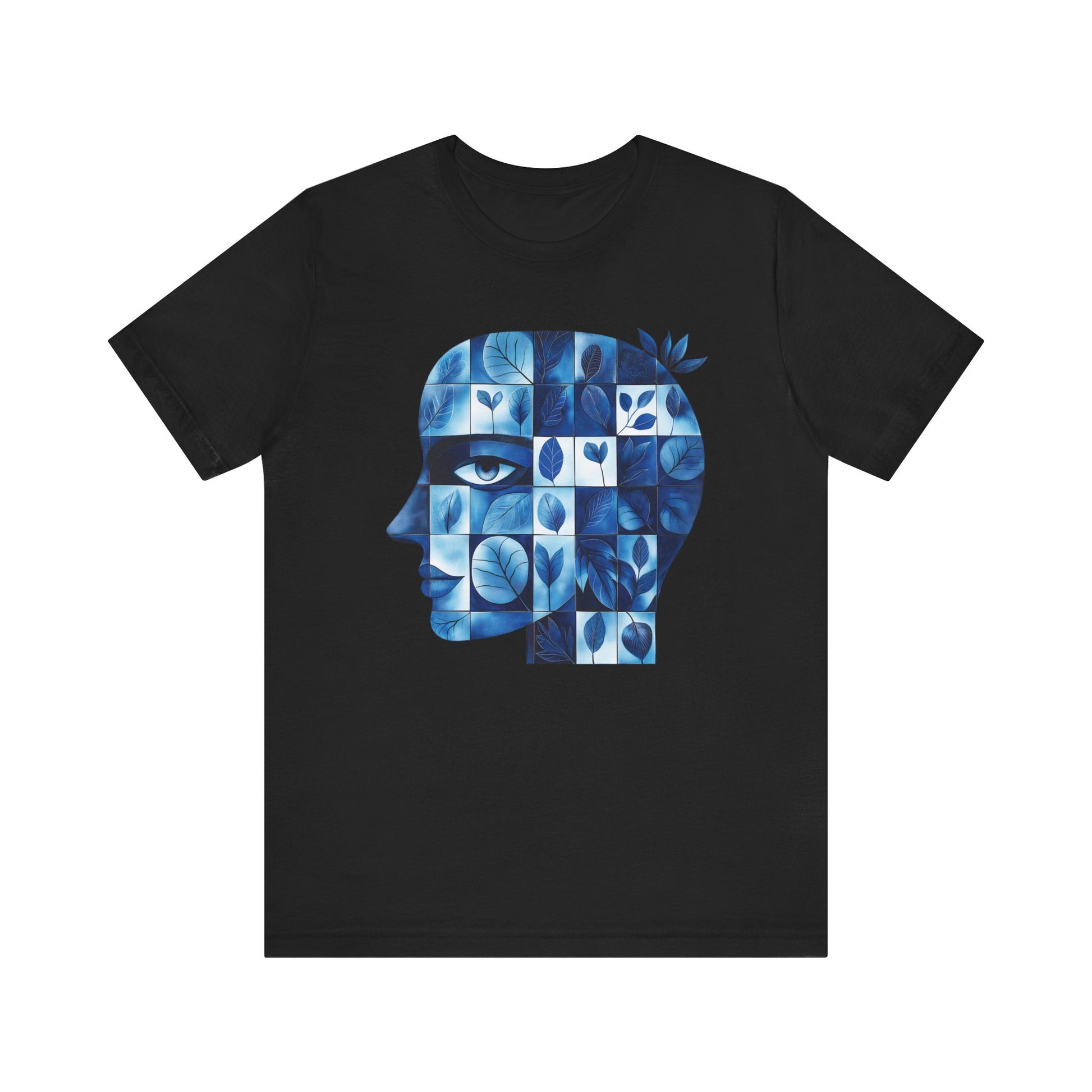 Artistic Floral Head Unisex Tee - Thoughtful Blue Design